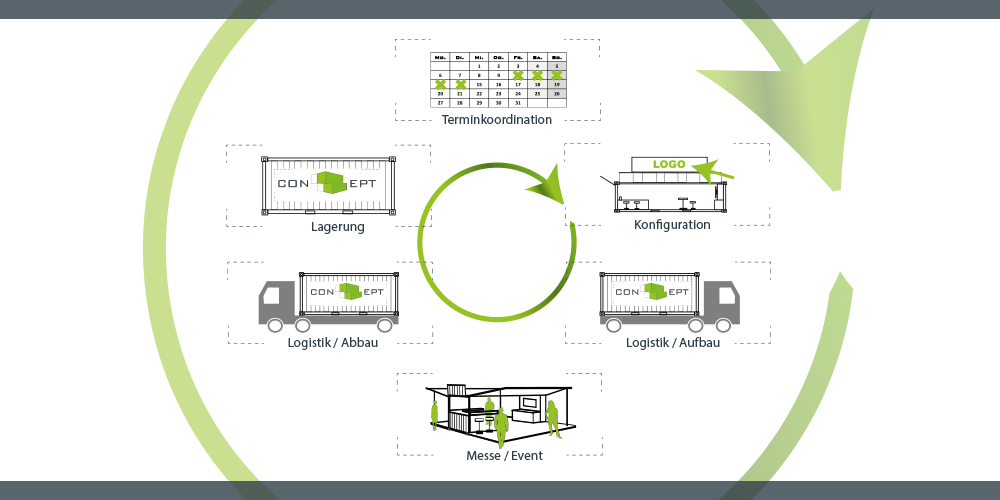 Sie buchen unseren Messe- & Event-Container für Ihre Veranstaltung. Auf Wunsch übernehmen wir als Full-Service Dienstleister die komplette Planung und Organisation.